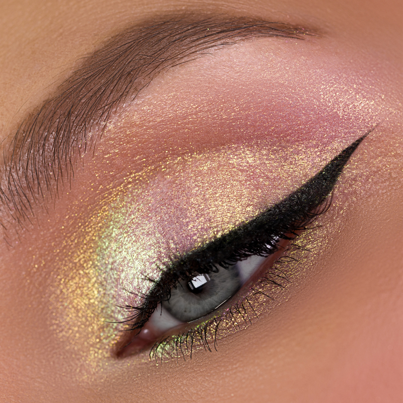 Переливающийся разнодисперсный 3D-глиттер создает на веках тончайшее, одновременно объемное металлическое и дуохромное сияние, зависимо от выбранного оттенка. Создают на веках мерцание, особенно выигрышно смотрится при искусственном освещении.