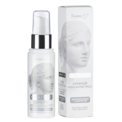 равномерно нанесите крем на чистую кожу лица, шеи и декольте лёгкими похлопывающими движениями не позднее, чем за 30 минут до сна. Максимальный эффект депигментации и осветления достигается при комплексном применении средств линии K-W.H.I.T.E 3:0.