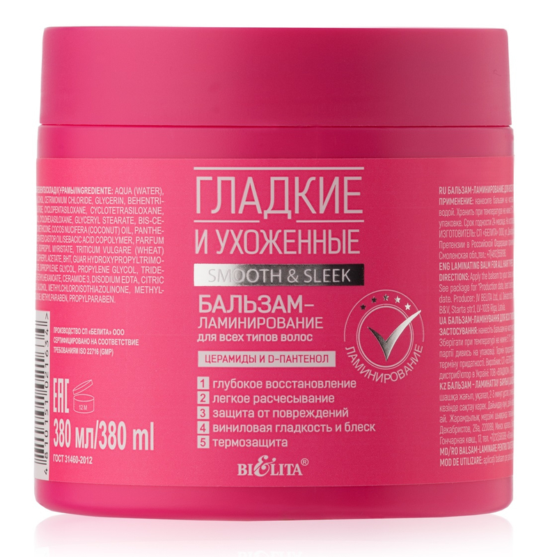 Белита Гладкие и Ухоженные Бальзам-ламинирование для всех тип волос 380мл